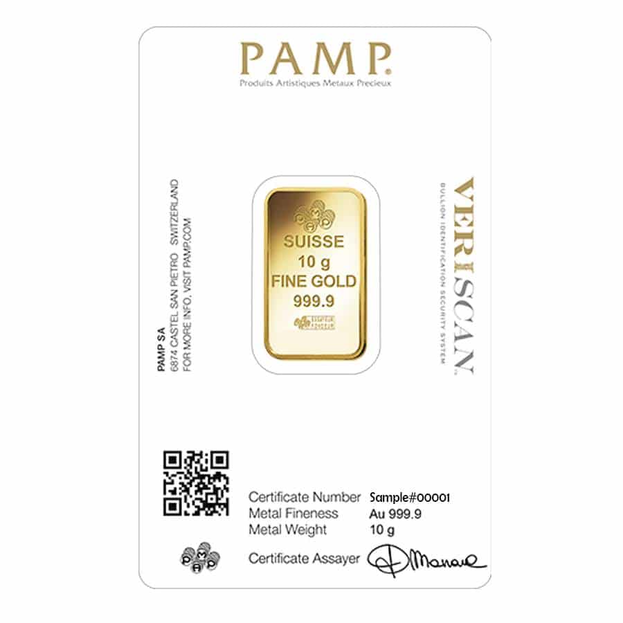 The front of the bar is the image of Lady Fortuna. The reverse of the bar contains the weight, brand, fineness, and serial number. Each bar comes with its own serial number.