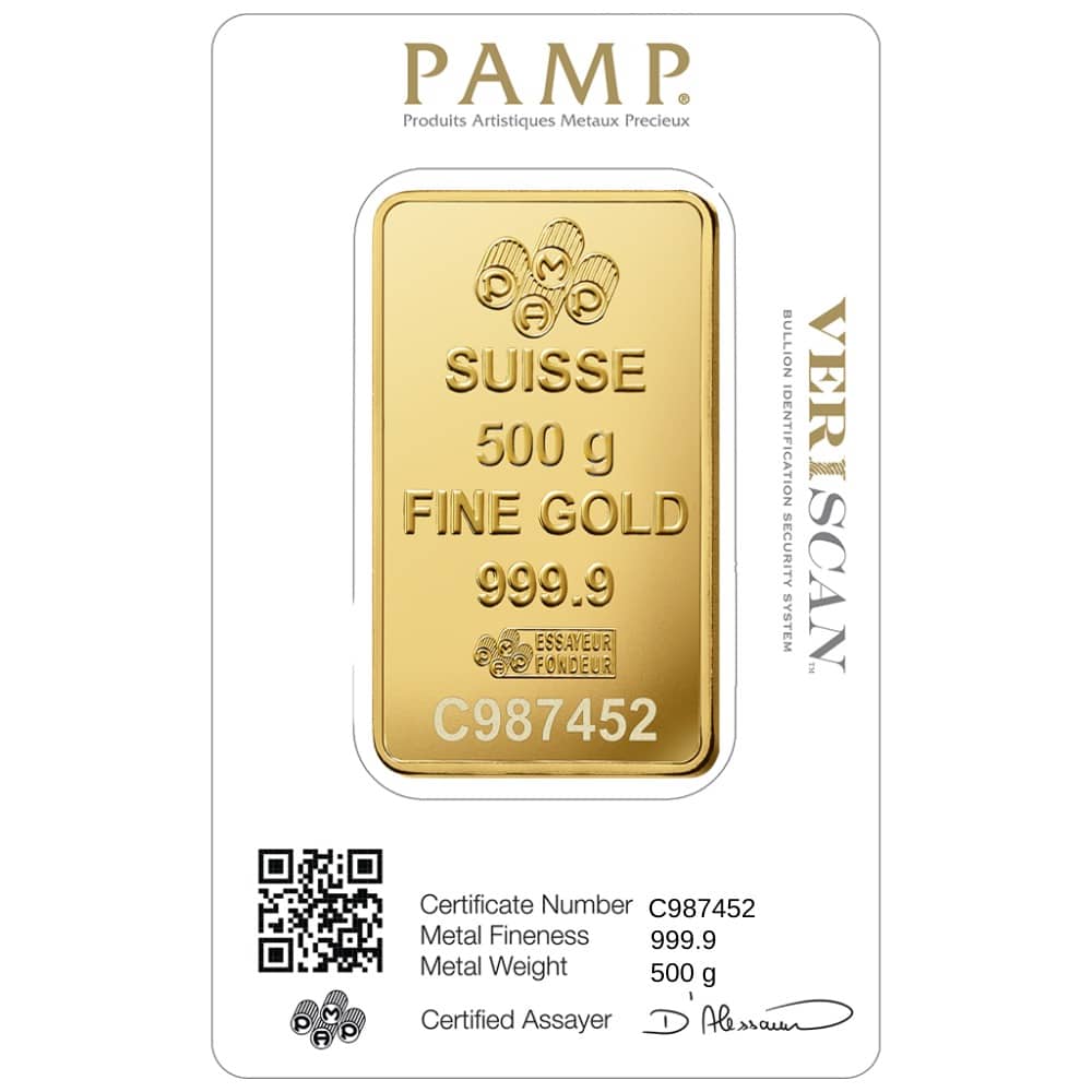 Description: 500 gram or 1/2 kilogram 999.9 purity gold bar.